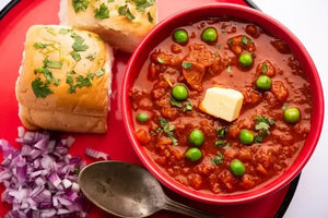 Pav Bhaji is usually made with a mix of vegetables, but the most common include potatoes, peas, carrots, and tomatoes. The vegetables are cooked in a spiced butter sauce and served with soft bread rolls.